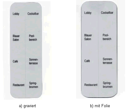 gravierbare und versenkte Beschriftungsfelder runden das Bild ab.