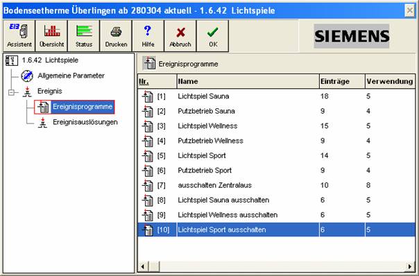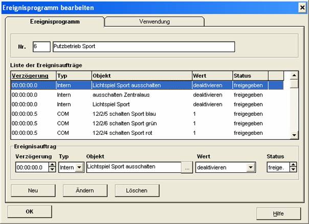Hier können durch das Pop-Up Menü mit der rechten Maustaste oder dem Assistenten Ereignisprogramme und –auslösungen erstellt werden . Ein Ereignisprogramm sieht dann wie folgt aus :